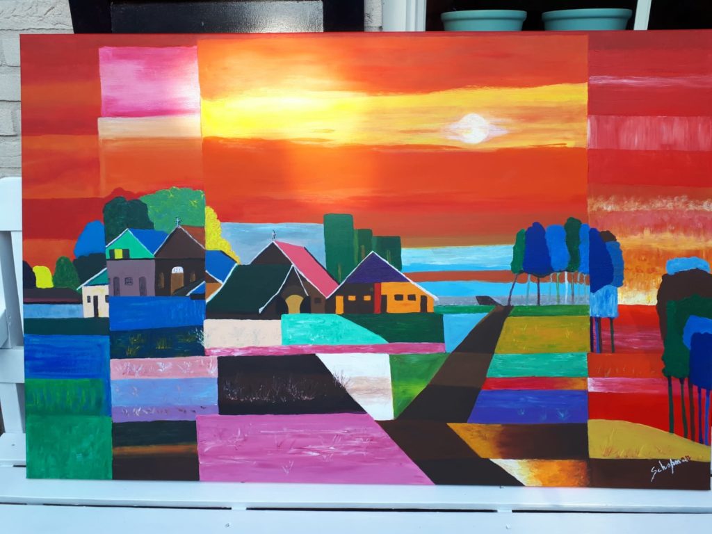 Op verzoek van een collega heb ik dit schilderij gemaakt. Het is de boerderij waarzijn vrouw toendertijd woonde. Naar voorbeeld van Ton Schulten