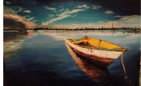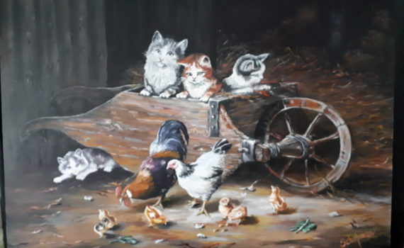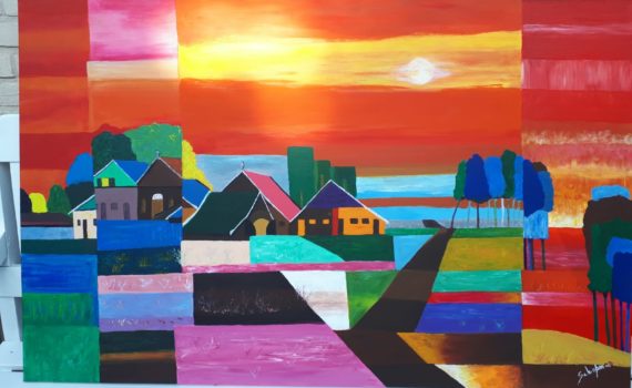 Op verzoek van een collega heb ik dit schilderij gemaakt. Het is de boerderij waarzijn vrouw toendertijd woonde. Naar voorbeeld van Ton Schulten